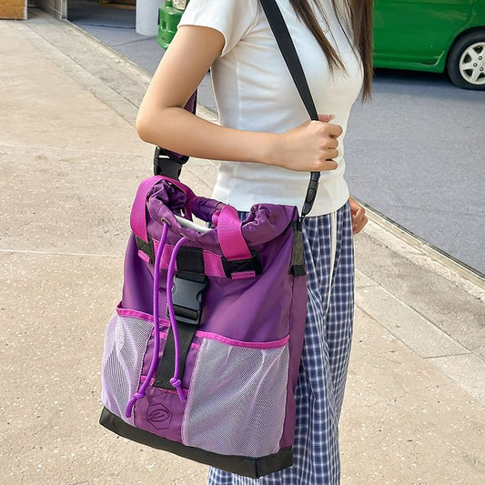 Panel Bag Mesh Buckled Crossbody Nylon