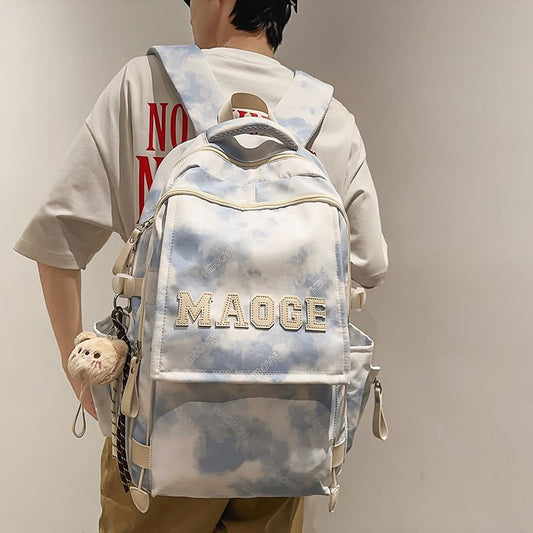 Multi-Pocket Print Charm Backpack / Cartoon Bag Set
