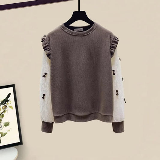Brown Bow Knot Sleeve Shirt High Waist Skirt