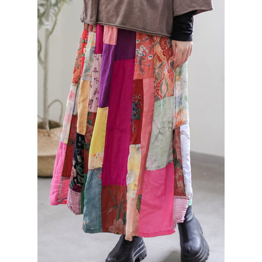 Women Summer Vintage Floral Cotton Loose Skirt BN1017