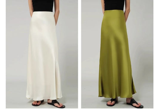 Midi High Satin Skirt Rise Plain Slit Pencil