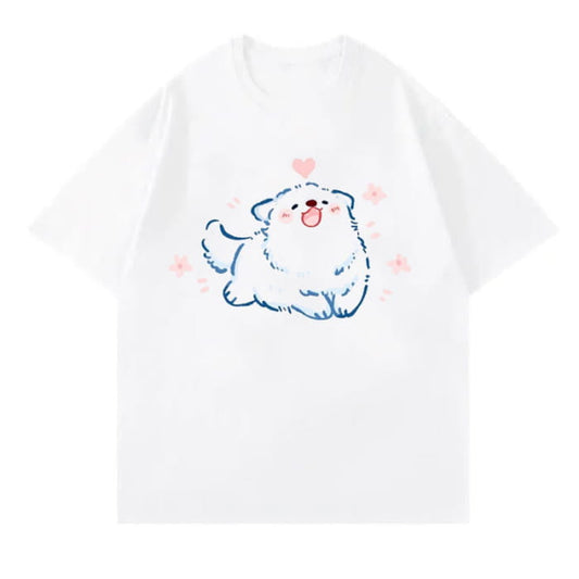 Cartoon Fox Letter Print T-Shirt Blue Pantskirt