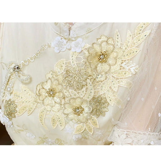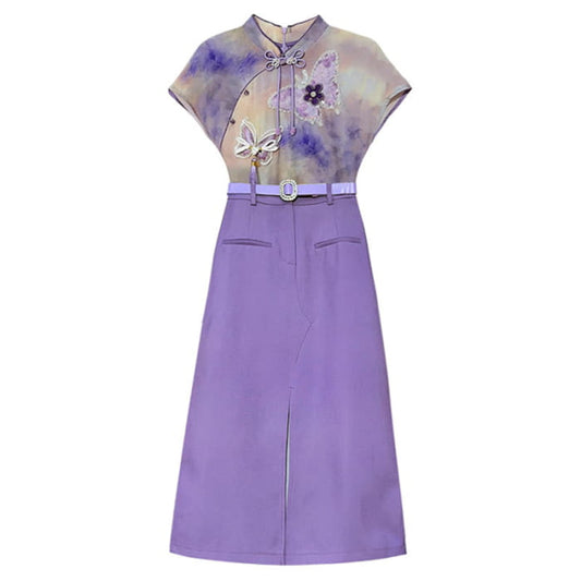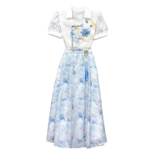 Traditional Flower Print Long Sleeve Shirt Skirt