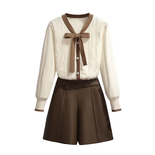 Elegant Bowknot Cardigan Sweater Elastic Waist Shorts