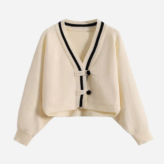 Elegant Vintage Buckle Cardigan Sweater Pleated Skirt