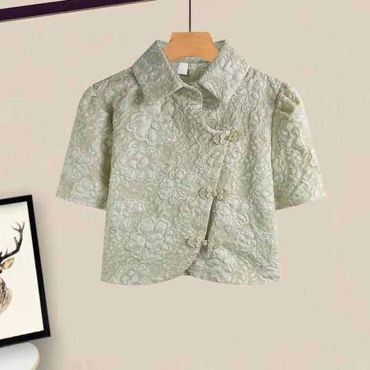 Vintage Green Embroidery Lapel T-Shirt Tradition Printed Skirt