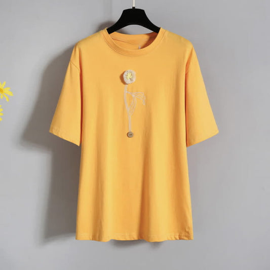 Yellow Flower Embroidery T-Shirt Floral Print Skirt