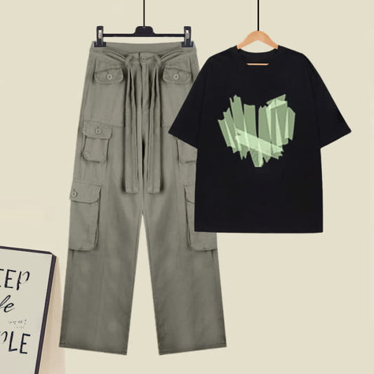 Cartoon Letter Pink Casual Shirt Cargo Pants