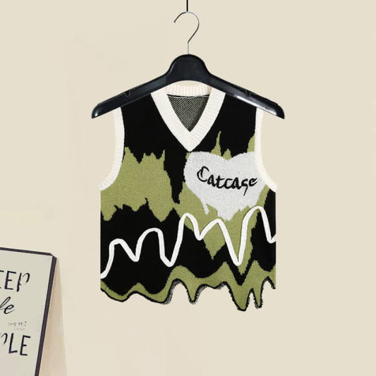 Colorblock V-neck Knit Vest Lapel Pleated Shirt Dress