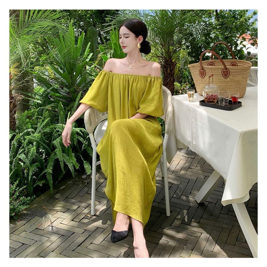 Set: Spaghetti Strap Plain Slit Midi A-Line Dress + Long-Sleeve Cold-Shoulder Top