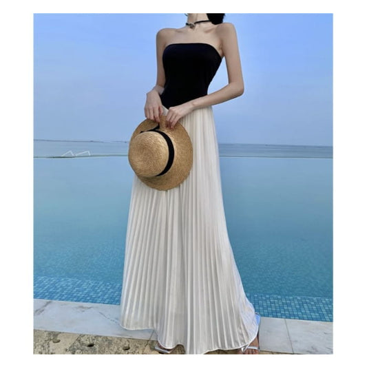 Strapless Two-Tone Accordion Pleat Midi Sundress