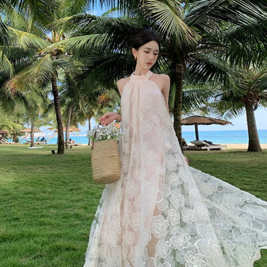 Spaghetti Strap Plain Flower Detail Maxi Sundress