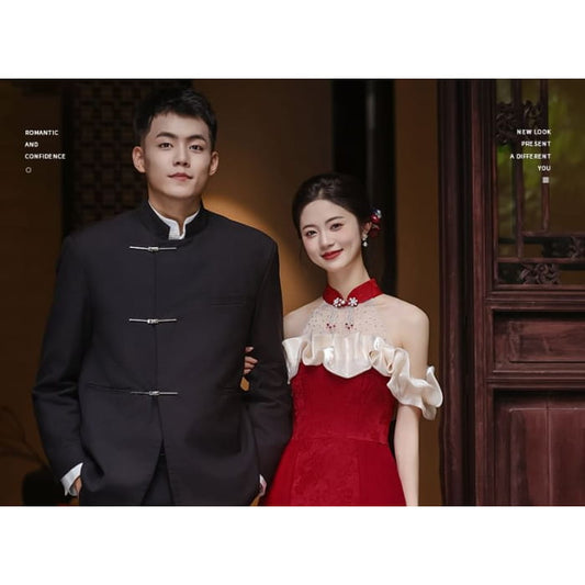 Halter Mandarin Collar Cold-Shoulder Asymmetrical A-Line Evening Dress