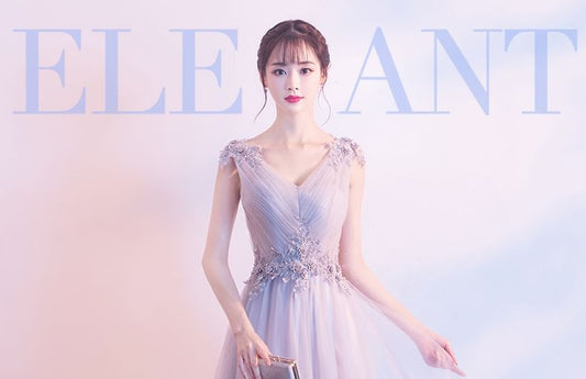 / Dress Plain V-Neck A-Line Gown Short-Sleeve Evening