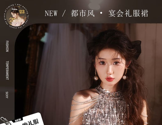 Halter Neck Knot Front Plain Maxi Sheath Dress