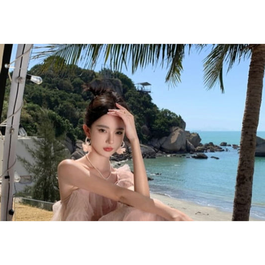 Puff-Sleeve Asymmetrical Plain Bow Cutout Midi Sundress