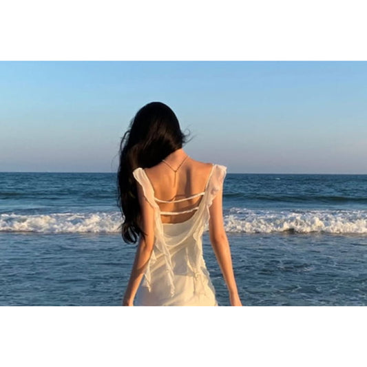 Spaghetti Strap V-Neck Plain Mini A-Line Dress