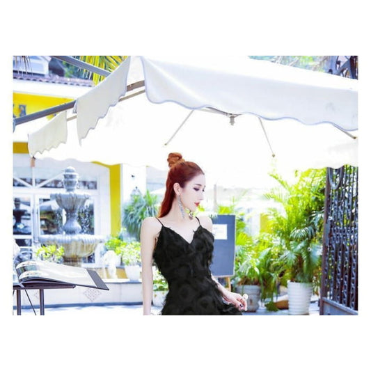 Spaghetti Strap Plain Fringed Trim A-Line Evening Dress