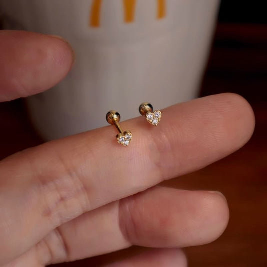 Sterling Heart Rhinestone Earring Barbell Silver