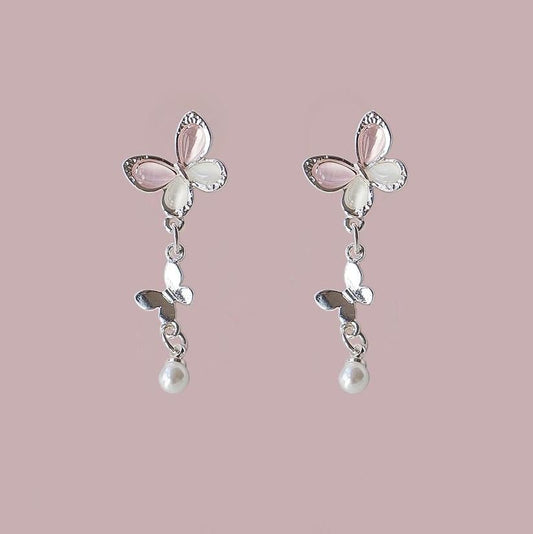 Stud 925 Sterling Drop Butterfly / Silver Earring