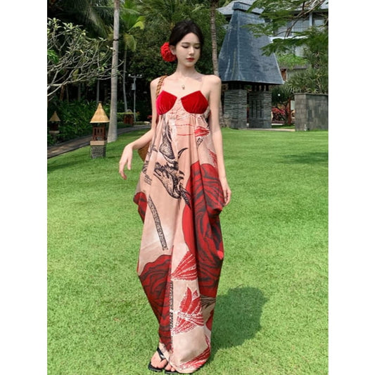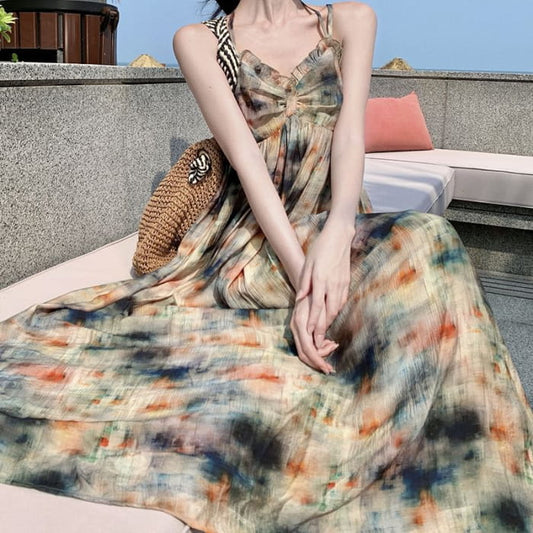 Spaghetti Strap Floral Cutout Maxi Sundress