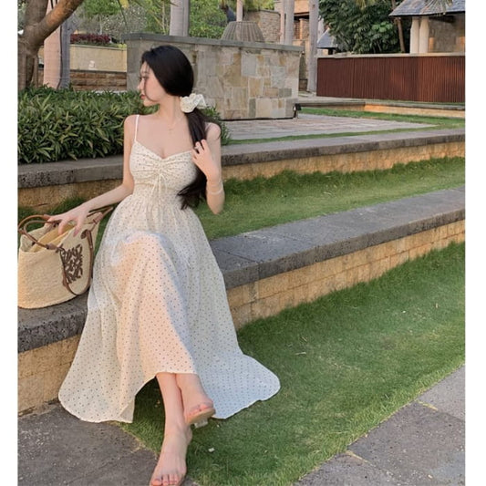 Spaghetti Strap Dotted Maxi A-Line Dress