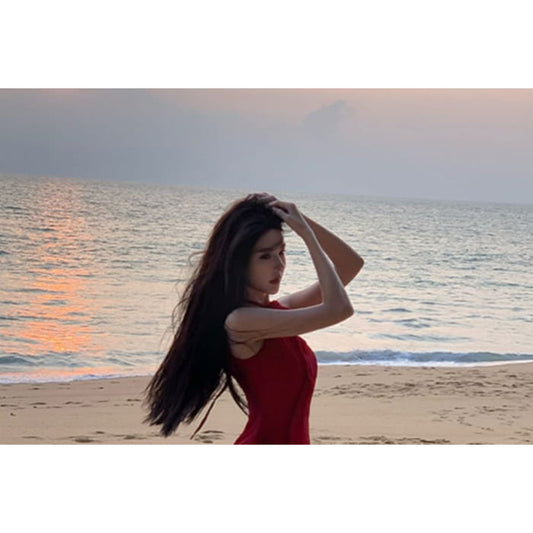 Spaghetti Strap Asymmetrical Plain Ruffled Midi A-Line Dress