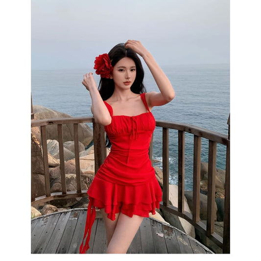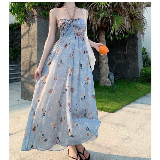 Spaghetti Strap Floral Print Ruffled Midi Sundress