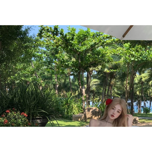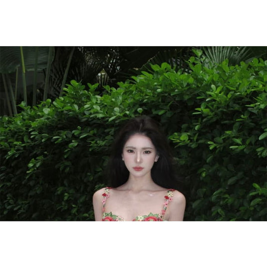 Set: Halter Floral Flower Accent Crop Top + High Waist Slit Maxi Pencil Skirt