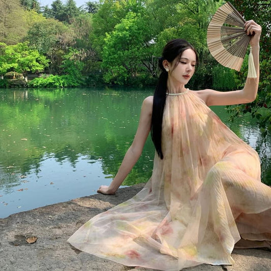 Halter Print Mesh Maxi