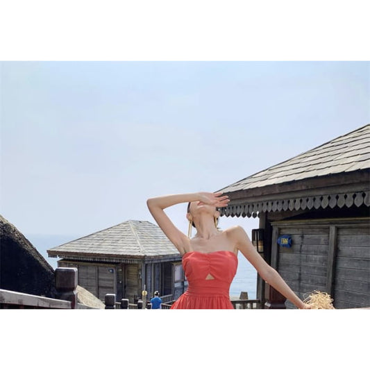 Plain Cutout Ruffle Trim Maxi