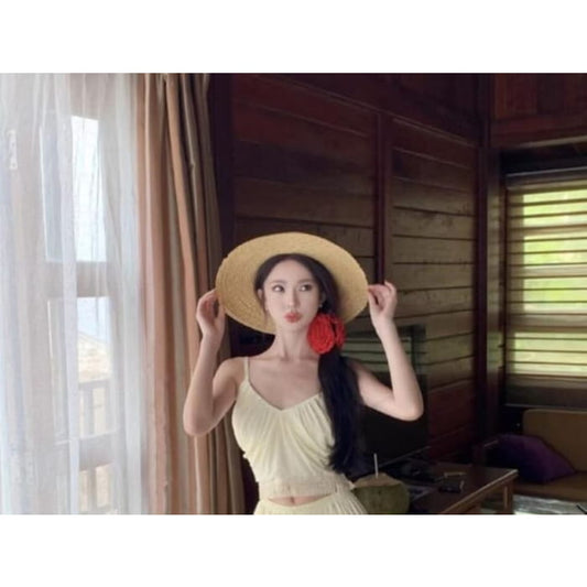 Set: Plain Fringed Crop Cami Top + Elastic Waist Culottes