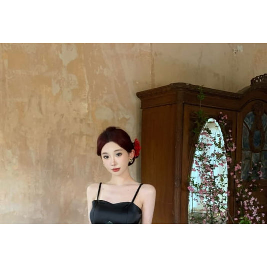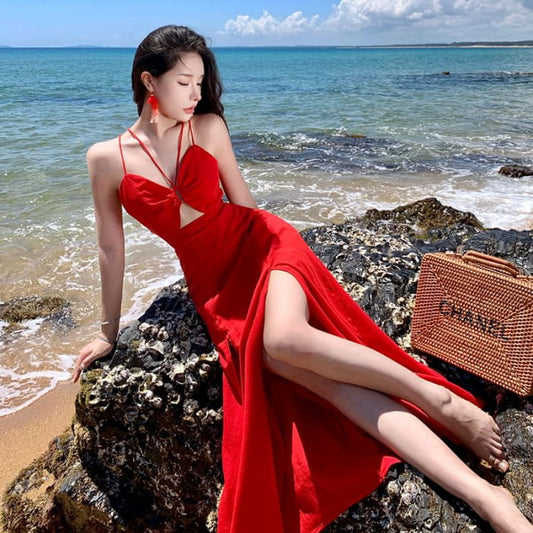 Spaghetti Strap Plain Cutout Slit Midi