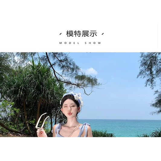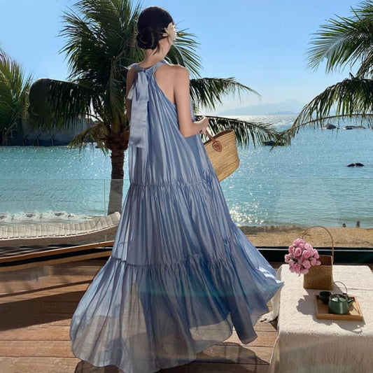 Halter Plain Tiered Flower Accent Maxi