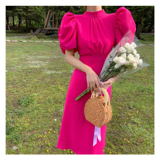 Short-Sleeve Open Back Plain Midi A-Line Dress