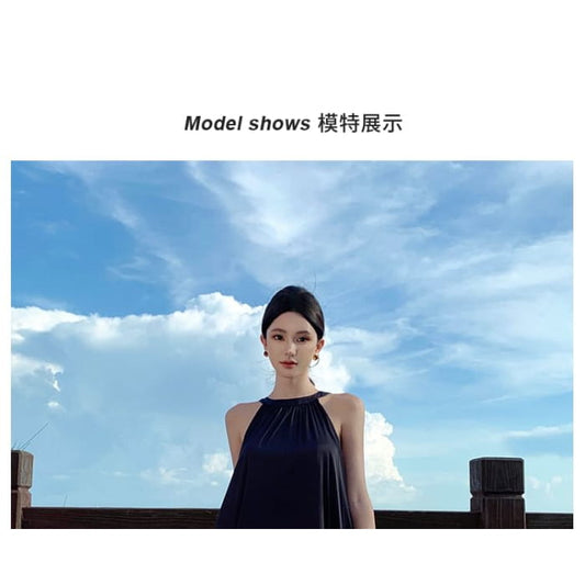 Spaghetti Strap Cowl Neck Plain Midi A-Line Sundress