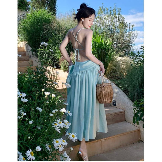 Spaghetti Strap Plain Open Back Maxi A-Line Sundress