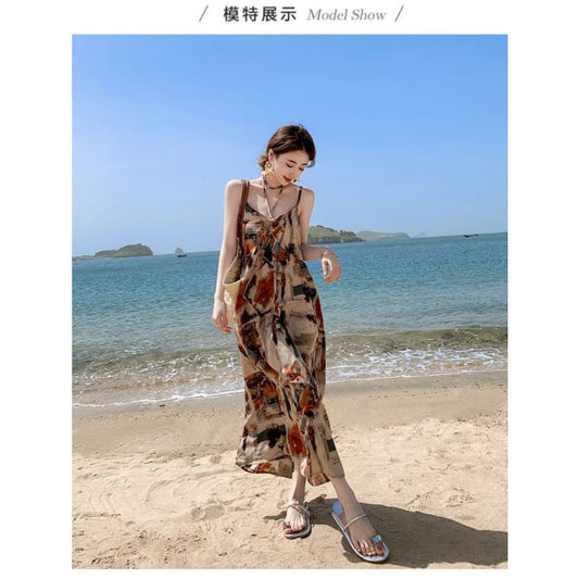 Spaghetti Strap Flora Open Back Midi A-Line Dress