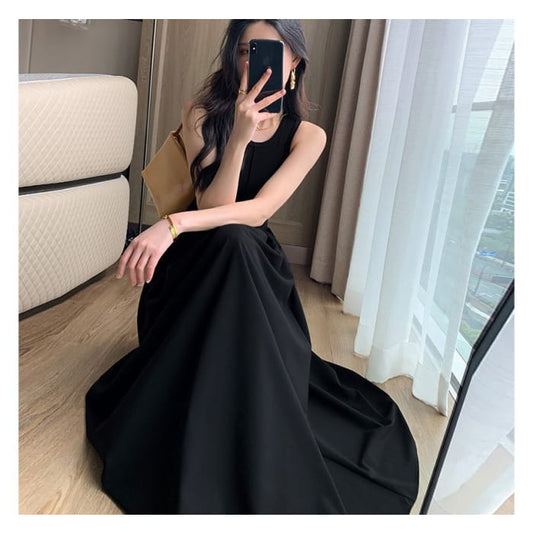 Sleeveless Scoop Neck Plain Maxi A-Line Dress