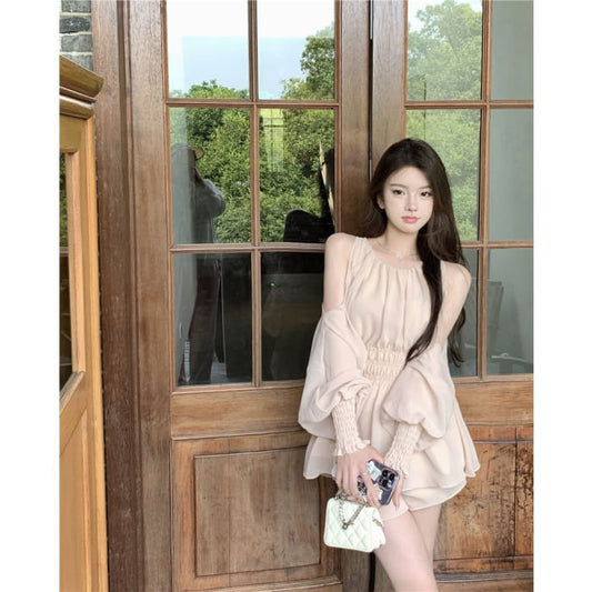 Sheer Shirt / Spaghetti Strap Mesh Overlay Dress
