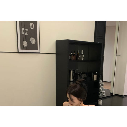 Spaghetti Strap Scoop Neck Plain Lace Panel Open Back Maxi A-Line Dress