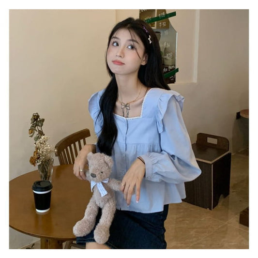 Plain Ruffle Lace Trim Shirt