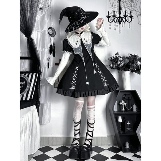 Black Beige Ruffle Banded Collar Lolita Short Dress
