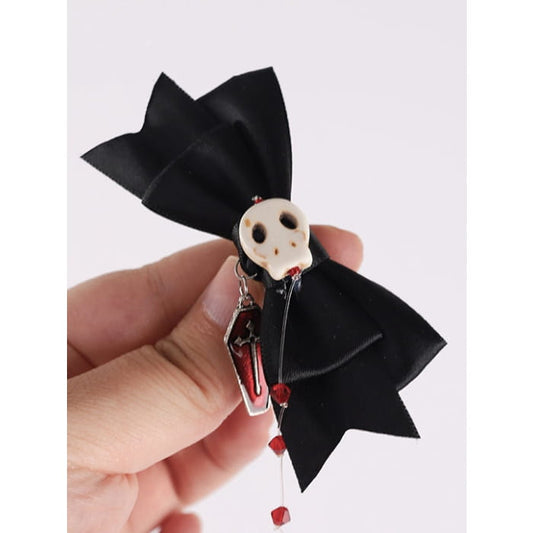 Coffin Black Skull Bowknot with Red Bwads Hairclip