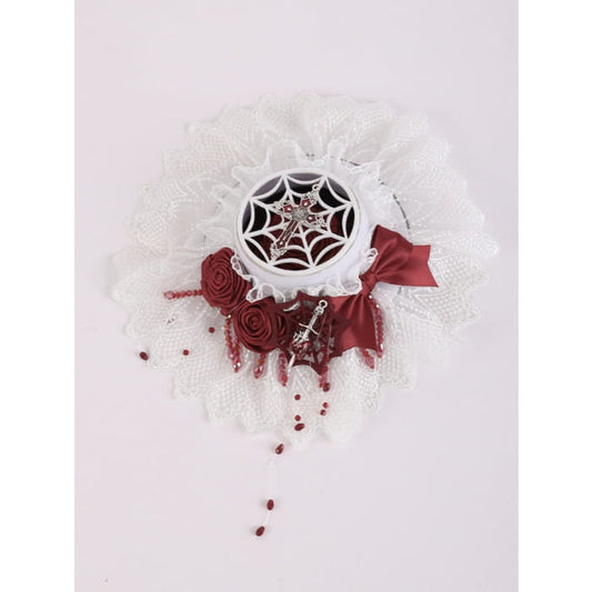 Cross and Sword White Lce Red Rosettes Bowknot Mini Hat
