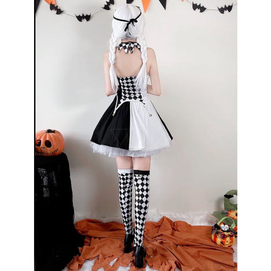 Halloween Black White Clown Costume Top and Skirt