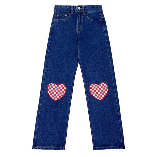 Checker Heart Wide Jeans