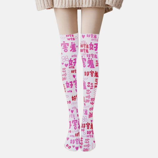 Pink Chinese Characters Print Lolita Stockings