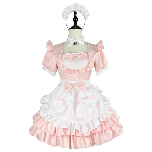 Pink Lace Up Lolita Maid Dress Set