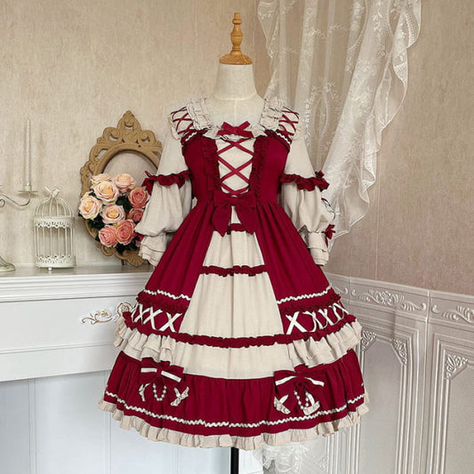 Red Bow Knot Decor Lace Up Lolita Dress